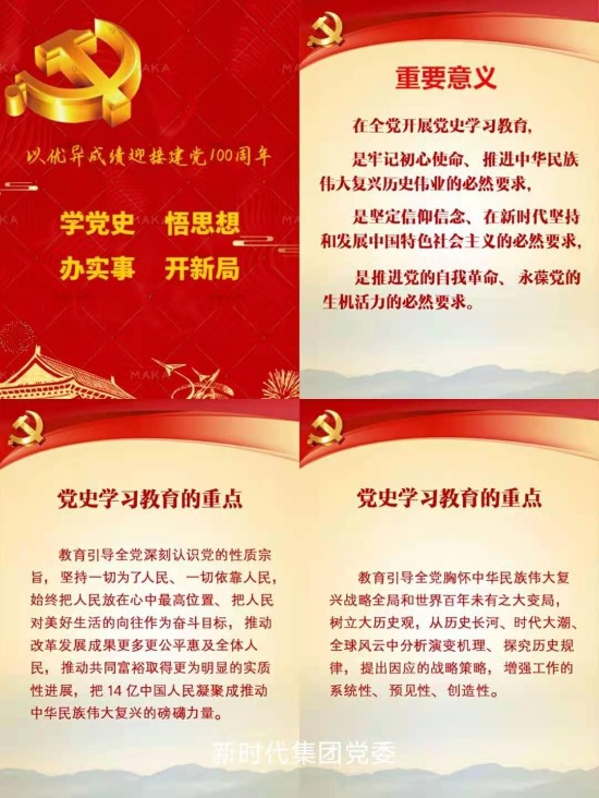 按:在黨史學習教育動員大會上,習近平總書記深刻闡述了開展黨史學習教育的重大意義,深刻闡明了黨史學習教育的重點和工作要求,對黨史學習教育進行了全面動員和部署。集團公司黨委堅決貫徹落實黨中央決策部署,按照國資委黨委工作要求,及時傳達學習習近平總書記重要講話精神,對集團公司開展黨史學習教育進行研究部署。從本期開始,《先鋒》將陸續刊登各單位的學習動態和經驗做法,供相互學習借鑒。 集團公司黨委學習貫徹習近平總書記 在黨史學習教育動員大會上的重要講話精神 2月26日、3月3日,集團公司黨委兩次召開常委會議,傳達學習習近平總書記在黨史學習教育動員大會上的重要講話精神,研究部署集團公司系統黨史學習教育工作,黨委書記、董事長宋鑫主持會議并講話。 會議認為,習近平總書記的重要講話高屋建瓴、思想深邃,深刻闡述了在全黨開展黨史學習教育的重大意義,深刻闡明了黨史學習教育的重點和工作要求,對黨史學習教育進行了全面動員和部署,為我們開展好黨史學習教育指明了方向、提供了根本遵循。集團公司各級黨組織要提高政治站位,迅速把思想和行動統一到習近平總書記重要講話精神上來,全力學好黨史這門必修課,扎實開展好黨史學習教育,增強“四個意識”、堅定“四個自信”、做到“兩個維護”,以優異成績迎接建黨一百周年。 會議強調,要充分認識黨史學習教育的重大意義。通過開展黨史學習教育,從中國共產黨百年偉大奮斗歷程中汲取智慧和力量,使廣大黨員干部進一步學懂弄通做實習近平新時代中國特色社會主義思想,牢記黨的初心使命,始終對“國之大者”心中有數,解決好世界觀、人生觀、價值觀這個“總開關”問題,堅定不移推進全面從嚴治黨,持續營造良好政治生態,更加堅定自覺擔當好中央企業責任使命。要始終把牢黨史學習教育的目標要求,準確領會習近平總書記重要講話的科學內涵和核心要義,精心組織設計專題學習。要聚焦深化對黨史的系統把握,銘記百年奮斗光輝歷程,深刻汲取歷史經驗,弘揚偉大精神;聚焦馬克思主義中國化成果、特別是對習近平新時代中國特色社會主義思想深化理解,用黨的創新理論武裝頭腦、指導實踐、推動工作;聚焦“國之大者”,胸懷兩個大局,不斷提高政治判斷力、政治領悟力、政治執行力,堅決做到“兩個維護”。要精心組織謀劃,確保黨史學習教育取得扎實成效。要認真貫徹落實習近平總書記關于學黨史、悟思想、辦實事、開新局的要求,加強組織領導,壓緊壓實各級黨組織責任,全面啟動、高質量推進黨史學習教育;要注重示范引領,各級黨員領導干部要率先垂范、先學先悟,帶領黨員群眾不斷汲取黨史的精神力量;要加強宣傳引導,發揮好各類媒體平臺作用,大力選樹宣傳身邊典型,為黨史學習教育營造更加濃厚的學習氛圍。 會議審議了集團公司黨委開展黨史學習教育的實施方案和有關工作安排。 風電公司系統學習貫徹習近平總書記在 黨史學習教育動員大會上重要講話 風電公司黨委 中央黨史學習教育動員大會召開以來,風電公司黨委高度重視,及時召開黨委會進行專題研究,并迅速組織全系統各級黨組織深入傳達學習習近平總書記在黨史學習教育動員大會上的重要講話精神。 2月26日,風電公司黨委召開專題會,傳達學習習近平總書記在黨史學習教育動員大會上的重要講話精神,研究部署風電公司系統黨史學習教育工作安排。會議要求,風電公司系統各級黨組織和黨員干部要認真學習貫徹在黨史學習教育動員大會上的重要講話精神,不斷增強“四個意識”、堅定“四個自信”、做到“兩個維護”。要認真貫徹落實習近平總書記關于學黨史、悟思想、辦實事、開新局的要求,加強組織領導,壓緊壓實各級黨組織責任,全面啟動、高質量推進黨史學習教育,注重示范引領,各級黨員領導干部要率先垂范、先學先悟,帶領黨員群眾不斷汲取黨史的精神力量。加強宣傳引導,發揮好各類媒體平臺作用,大力選樹宣傳身邊典型,為黨史學習教育營造濃厚氛圍。 各基層黨支部按照風電公司黨委部署,迅速掀起學習貫徹習近平總書記在黨史學習教育動員大會上的重要講話精神和黨史熱潮。一是組織購買《中國共產黨簡史》《中國共產黨歷史通識課》等教材,做好學習準備工作。二是通過“三會一課”、“線上春訓”、“黨史百年*天天讀”等形式,積極抓好習近平總書記在黨史學習教育動員大會上的重要講話精神和黨史的學習。三是通過網站、微信平臺、手機報等形式抓好宣傳,為全面開展黨史學習教育營造良好的宣傳輿論氛圍。 從黨史中汲取力量 在奮斗路上砥礪前行 新時代集團黨委 2月20日,習近平總書記在黨史學習教育動員大會上發表重要講話,深刻闡述了開展黨史學習教育的重大意義,深刻闡明了黨史學習教育的重點和工作要求,對黨史學習教育進行了全面動員和部署,為開展好黨史學習教育指明了方向。新時代集團黨委及時組織學習貫徹習近平總書記重要講話精神,第一時間對全系統學習教育作出部署安排,制作宣傳手冊,并將開展黨史學習教育的重大意義和重點內容逐層分解,要求各級黨組織和廣大黨員干部做到學史明理、學史增信、學史崇德、學史力行,從黨史學習教育中汲取智慧力量,以更加昂揚的精神狀態和奮斗姿態,建功新時代,奮進新征程。