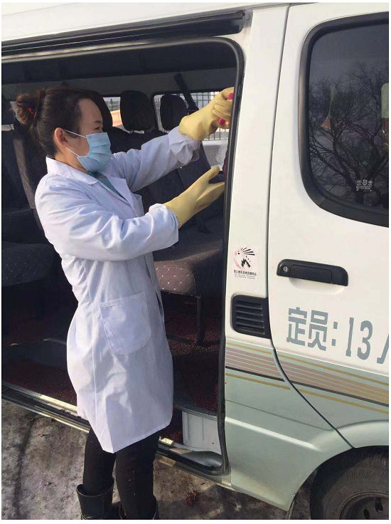 崗(gang)前體溫測量、車(che)輛消毒