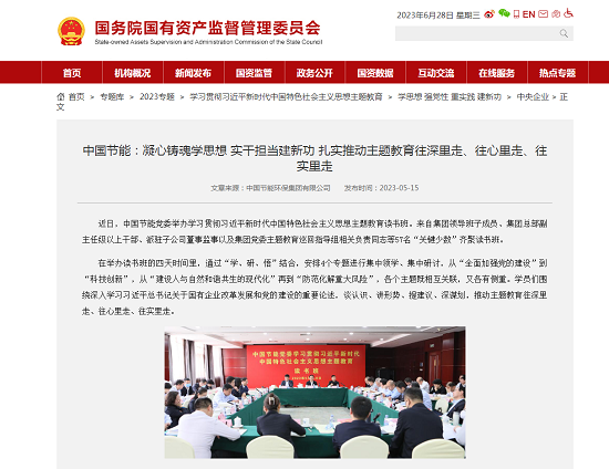 ?近日,中央主題教育官網、國資委網站、“國資小新”新媒體平臺、國資委主題教育簡報多篇次、高頻次報道中國節能開展主題教育的特色亮點和經驗做法,《習近平經濟思想研究》期刊特別刊發中國節能黨委書記、董事長宋鑫有關充分發揮主題教育牽引力作用,推動長江經濟帶高質量發展的署名文章,對中國節能扎實推動主題教育走深走實的具體實踐給予高度評價。